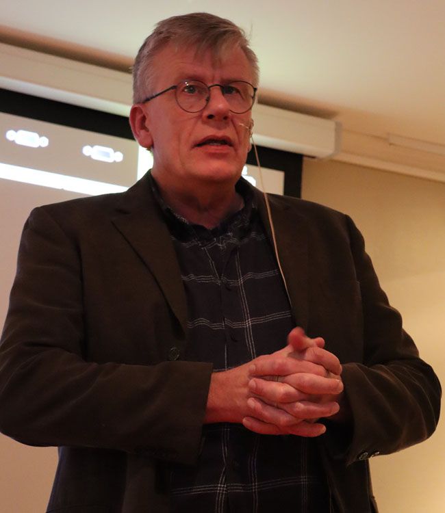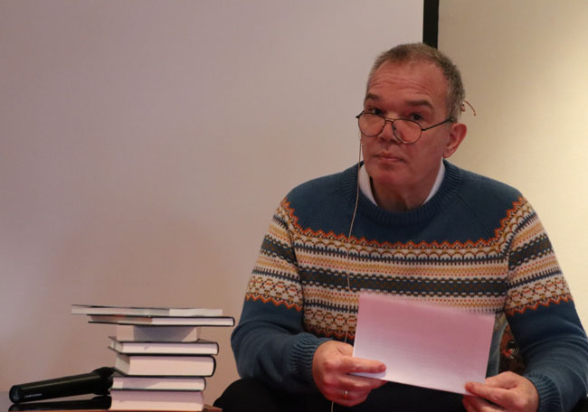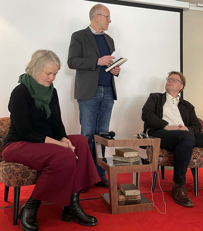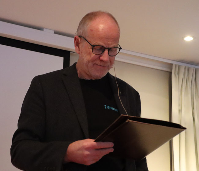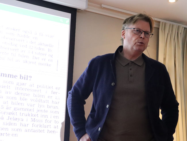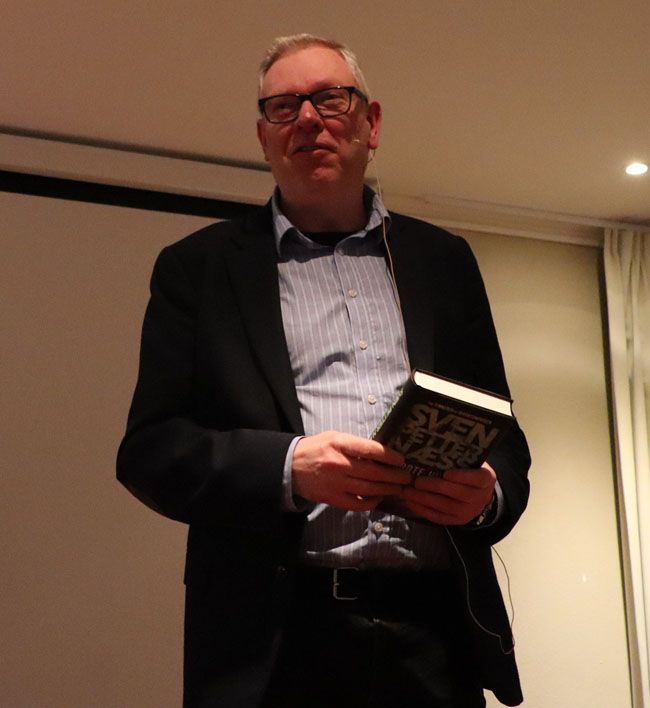 Forfatteren holdt et utrolig interessant foredrag som han hadde kalt for «Åsted Gjeving». Han snakket om bøkene sine, og spesielt de fire som er inspirert av ekte saker, «Katarina-koden», «Det innerste rommet», «Illvilje» og «Sak 1569».