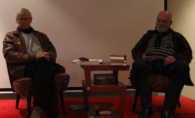 De lokale forfatterne Guttorm Eskild Nilsen og Knut Frognes var neste på scenen. Frognes har skrevet boka «Operasjon Soria Moria». Nilsen har vært på festivalen flere ganger. Han har blant annet skrevet sju krimbøker om pensjonert maskinsjef Konrad Ågesen.