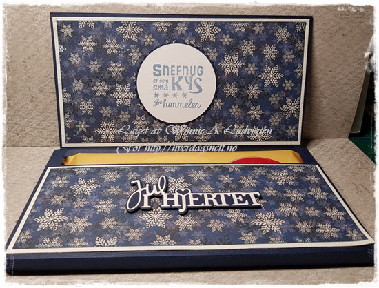 Sjokolade 24. november 2019 Anne Lise Johannessen :Artikkelen inneholder annonse fra stempelprodusenten: Motivene denne måneden kommer fra The Paper Shelter. Temaet er å lage noe med sjokolade. Elisabeth Hatlen: Elisabeth Tveit: Hilde Audahl: Marthe Fjellseth Mathisen: Rita Krogsund: Winnie A. Ludvigsen: Utskrift E-post Motiv: The Paper Shelter