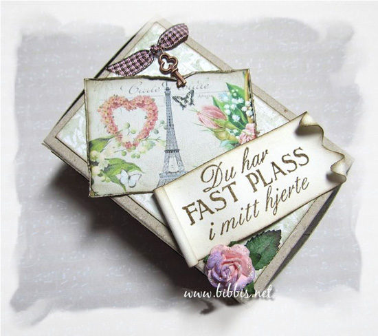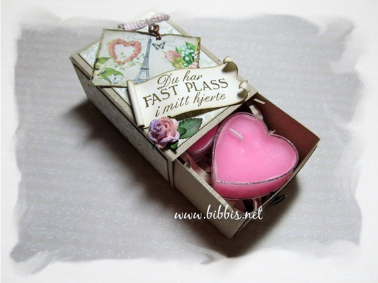 Den søte teksten kommer fra Kreativ Hobby og du finner den HER. Passer så fint når innholdet i esken er hjerte-te-lys synes jeg ;-)