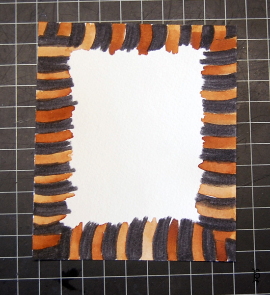 Så tok jeg en sort tusj og skriblet inn annenhver linje, og distress i fargen vintage photo på de andre.