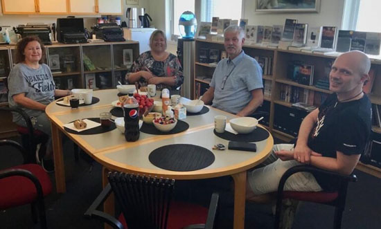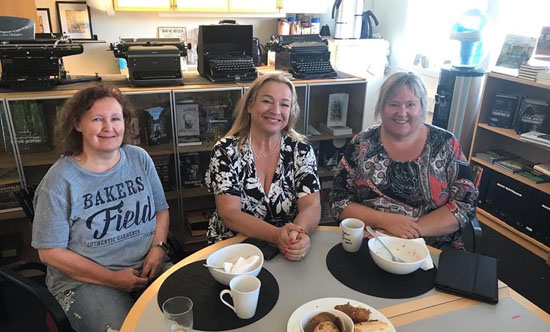 Høydepunktet denne måneden var da forfatterne Myriam H. Bjerkli og Frode Eie Gjørtz-Larsen inviterte oss (Mariann Sæther Tokle (Lillasjel) og meg) på lunsj hos Forlagshuset i Vestfold. De tok seg til og med fri fra ferien sin for å møte oss - det var et stort øyeblikk for to bokelskere!