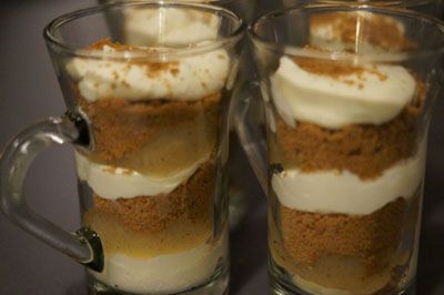 Pepperkaker kan brukes til mangt. Her en dessert som passer godt på en festmeny. Med hjemmelaget eplekompott og lettpisket krem, blir dette en frisk og smakfull dessert.
