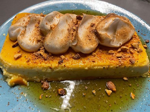 Karamellpudding eller crème caramel er en ovnsbakt dessert laget på egg, fløte, melk og sukker, og som serveres kald med karamellsaus. Det er vanlig å pynte desserten med pisket krem og friske bær. I denne oppskriften, er puddingen toppet med stivpisket eggehvite som er flammet, og pyntet med brente mandler.