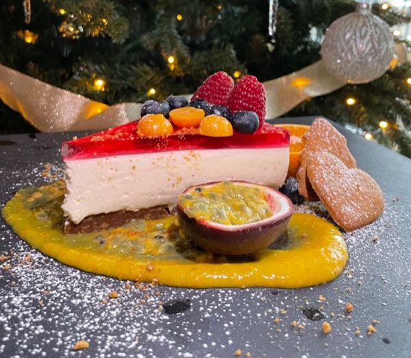 - Klementinmarmelade, bær og pasjonsfrukt til pynting. (Bruk ellers det du ønsker).